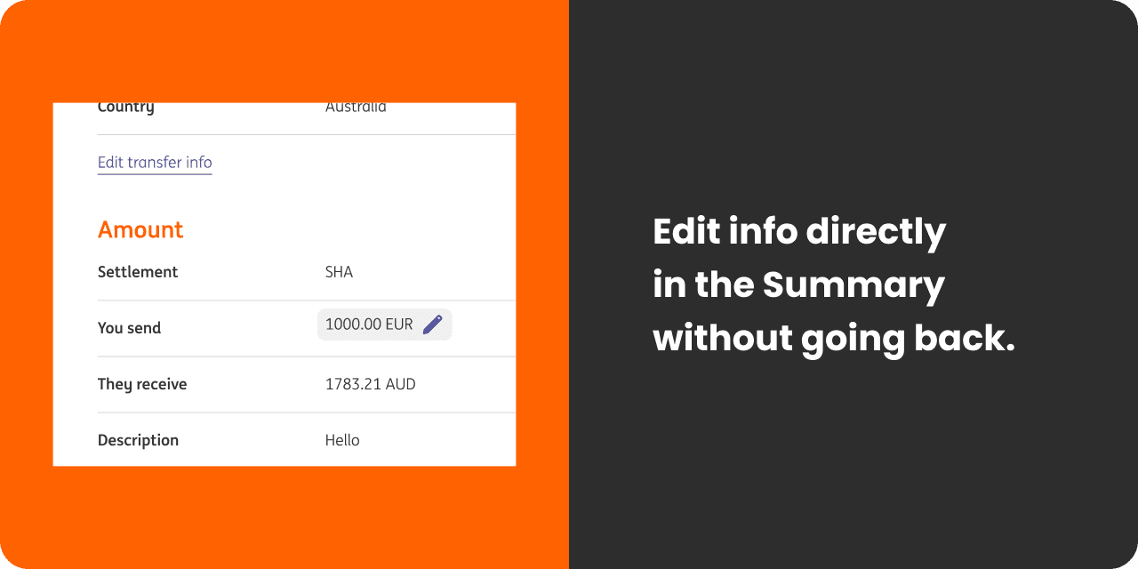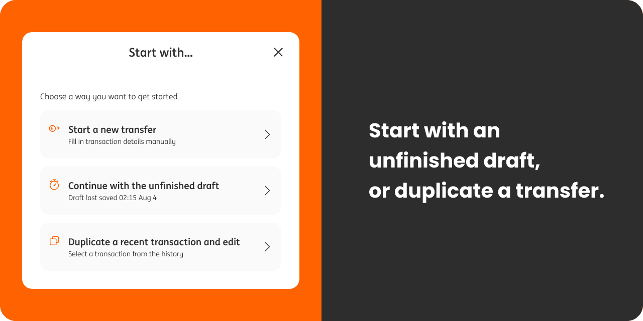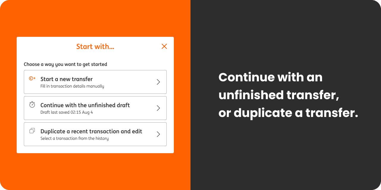 The user journey for global transactions is lengthy and easily disrupted by factors such as forgetting an address or IBAN, or comparing fees. To streamline the experience, I introduced three entirely new features.